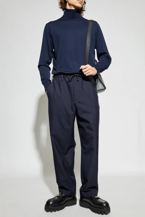 Die Wollhose, entworfen von Dries Van Noten , ist eine Hommage an die moderne Klassik in raffinierter Ausführung. Sorgfältig ausgewählter, natürlicher Stoff mit matter Oberfläche sorgt für außergewöhnliche Weichheit und ein angenehmes Tragegefühl, während die elegante, marineblaue Farbe dem Ganzen einen zeitlosen und universellen Charakter verleiht.
