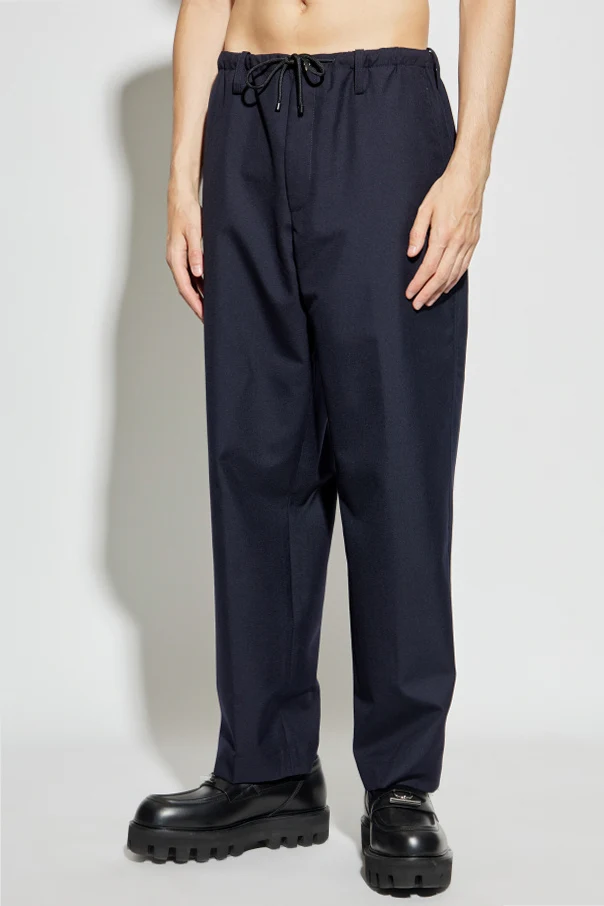 Der gerade, leicht lockere Schnitt mit einer geraden Beinlinie ermöglicht Bewegungsfreiheit bei gleichzeitiger, außergewöhnlicher Ästhetik. Ein Bund mit bequemem Gummizug und Kordelzug mit sorgfältig gearbeiteten Enden verbindet sportliche Akzente mit alltagstauglicher Funktionalität. Dezente seitliche Taschen und eine Gesäßtasche mit Knopfverschluss unterstreichen den praktischen Luxus dieses Modells.