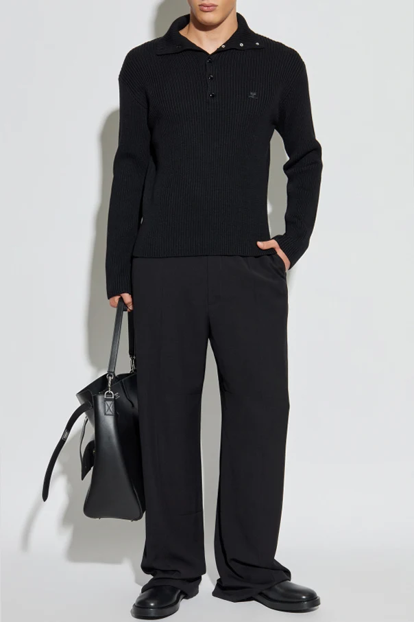 Der Wollpullover von Courrèges verkörpert die Quintessenz moderner Eleganz – ausgedrückt in zeitlosem Schwarz und einer meisterhaft ausgearbeiteten Silhouette. Der schlichte, klassische Schnitt und die dezent lockere Passform harmonieren perfekt mit der weich fallenden, edlen Wolle, deren grobes, geripptes Strickmuster sowohl einen raffinierten Look als auch exzellente Wärme an kühlen Tagen bietet.