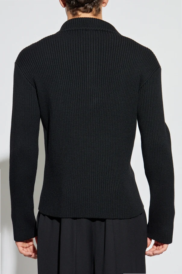 Der erhöhte Kragen mit einem dezenten, halblangen Verschluss unterstreicht den modernen Charakter und betont gleichzeitig die Funktionalität. Die Exklusivität des Pullovers wird durch das tonale, auf der linken Brustseite platzierte Logo vollendet – ein zurückhaltendes, aber deutlich erkennbares Detail, das von Kennern höchster Schneiderkunst geschätzt wird.