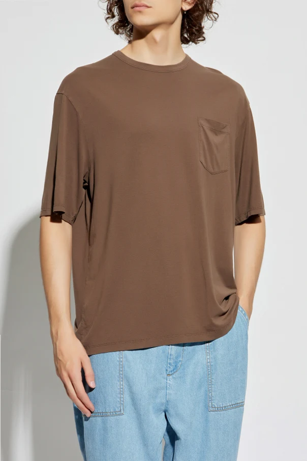 ‘Benny’ T-Shirt mit Brusttasche von Officine Générale ist die Essenz raffinierten Minimalismus. In einem edlen Braunton gehalten, präsentiert er sich äußerst distinguiert, während die leicht lockere Passform mit der Schlichtheit der Schulter- und Körperlinien harmoniert. Die locker geschnittenen Kurzärmel verleihen dem Ganzen einen modernen Charakter und fügen sich perfekt in die aktuellen Trends der Herrenmode ein.