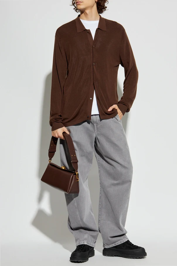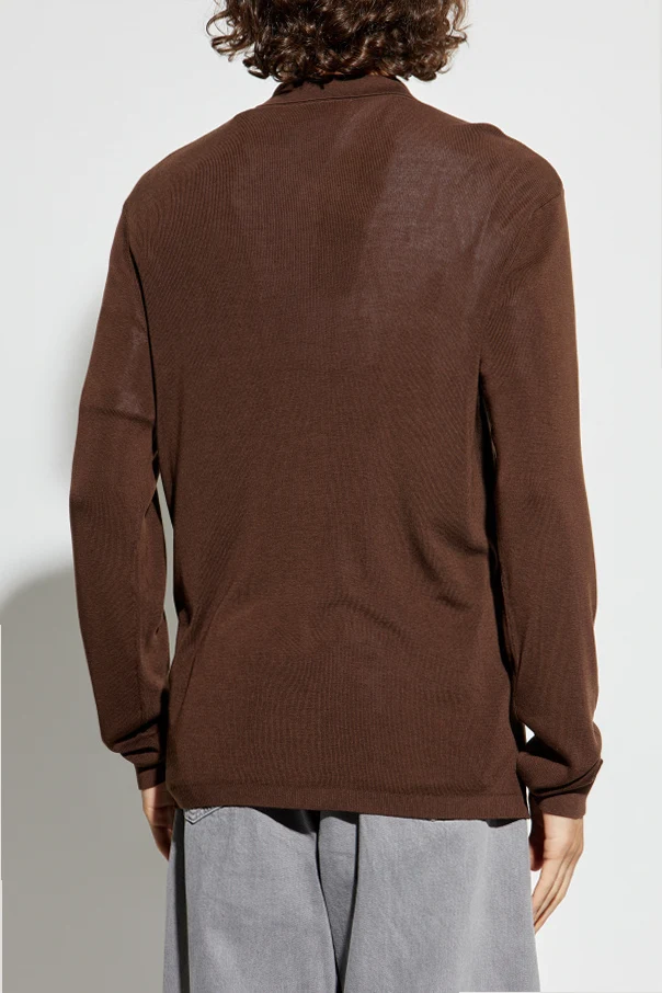 Das feine Strukturstrickmaterial aus einer luftigen Lyocell- und Wollmischung bietet nicht nur außergewöhnliche Weichheit, sondern auch eine edle Leichtigkeit sowie Transparenz, die in exklusiven Kollektionen geschätzt wird. Eine dezente Knopfleiste mit kleinen Knöpfen rundet den minimalistischen Stil ab. Das Fehlen sichtbarer Schriftzüge oder Logos unterstreicht die unaufdringliche Eleganz des Designs der Marke Officine Generale .