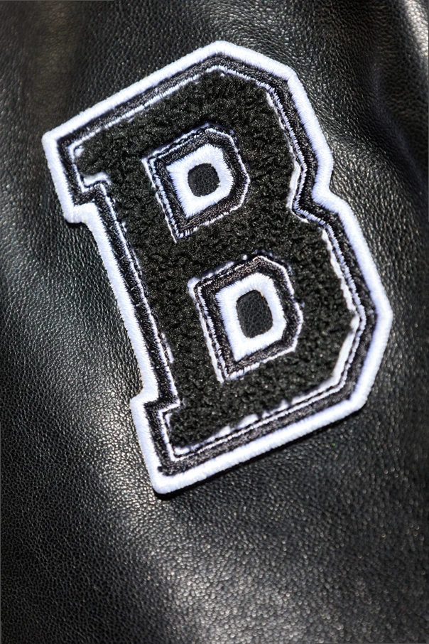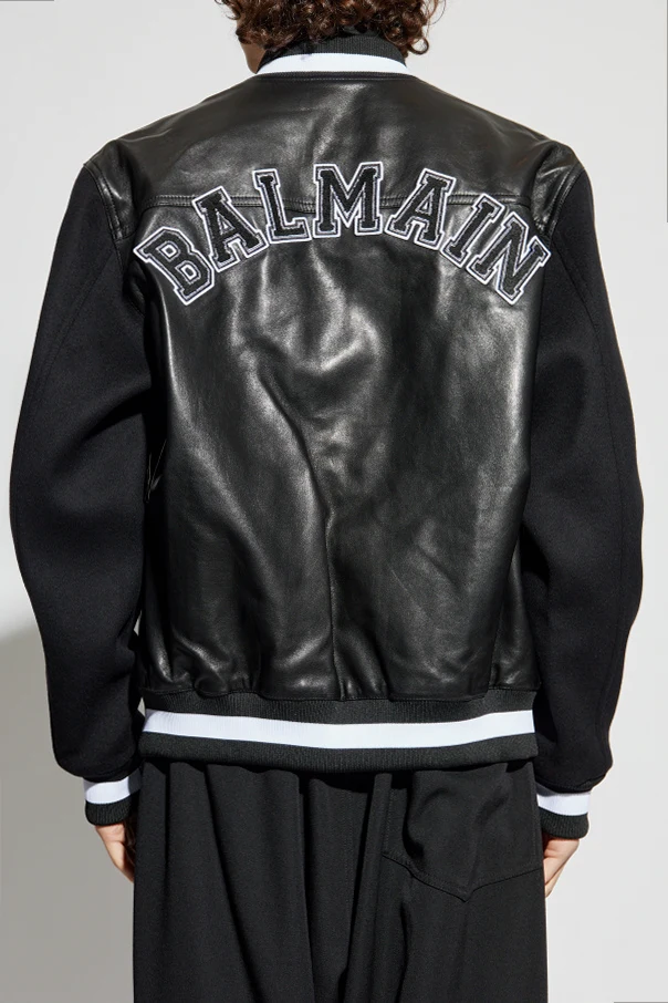 Das Gesamtbild wird durch elastische Bündchen mit charakteristischen schwarz-weißen Streifen sowie markante Details vollendet: ein auffälliger Buchstabe „B“ auf der Vorderseite aus Material mit ausdrucksstarker Struktur und ein beeindruckender, gestickter „BALMAIN“-Schriftzug auf dem Rücken. Verschlossen wird die Jacke mit praktischen Druckknöpfen; sie besticht besonders durch ihren extravaganten, jugendlichen Spirit, der typisch für das französische Modehaus Balmain ist.