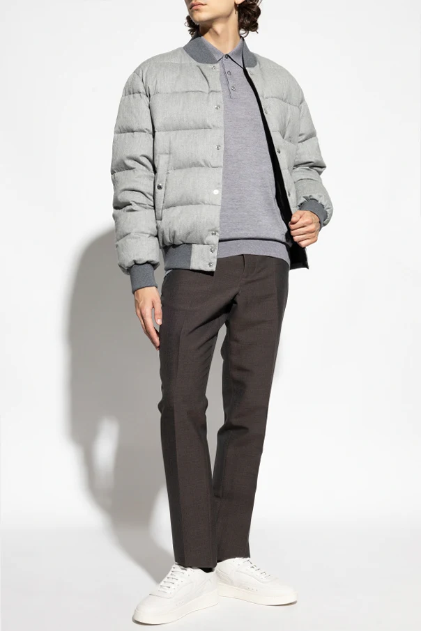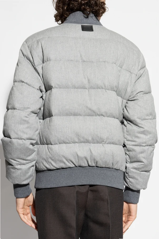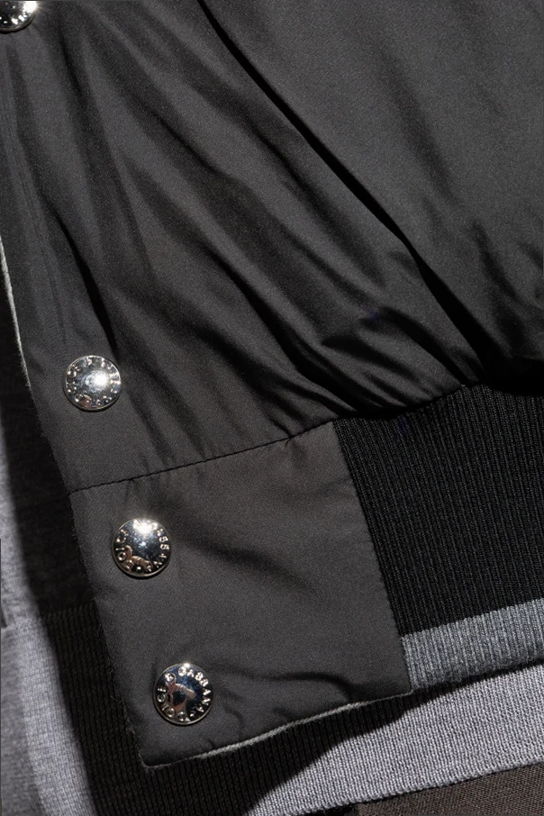 Daunenjacke von Dolce & Gabbana ist die Quintessenz italienischer Raffinesse und moderner Minimalistik. Der klassische Bomber-Schnitt verleiht der Silhouette Dynamik, während der matte, glatte Stoff in Grau subtile Eleganz unterstreicht. Breite, horizontale Steppnähte schaffen eine harmonische Komposition und erinnern an Handwerkskunst höchsten Niveaus.