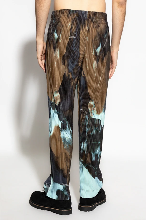 Plissierte Hose von Homme Plissé Issey Miyake ist ein Manifest zeitgenössischer japanischer Ästhetik, die Innovation mit kompromissloser Eleganz vereint. Das Modell mit geradem, leicht lockerem Schnitt besticht durch seine Leichtigkeit und die äußerst strukturierte, gerippte Stoffoberfläche, die durch eine innovative Plissiertechnik erzielt wurde. Der elastische Bund betont den Tragekomfort und garantiert eine perfekte Passform ohne sichtbare Verschlüsse.