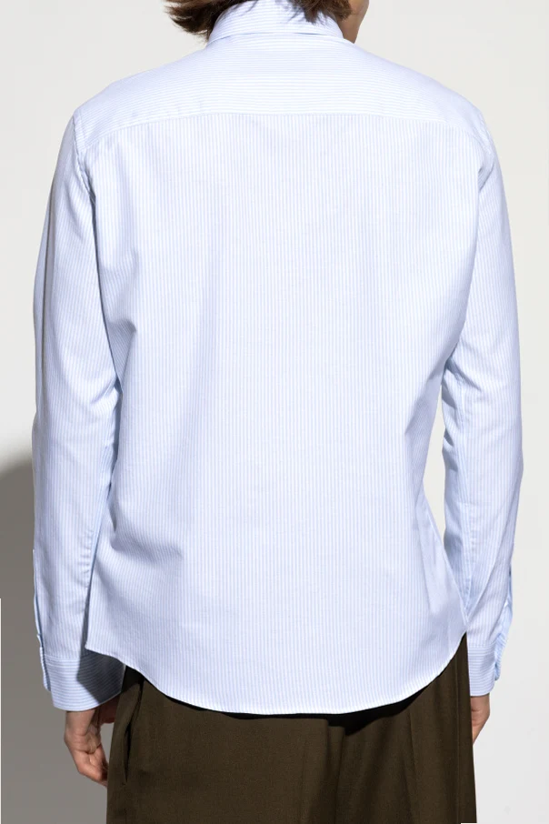Baumwollhemd mit Logo begeistert durch subtile Zurückhaltung und zeitlose Eleganz. Sein klassischer, maskuliner Schnitt, ergänzt durch eine leicht lockere Passform, unterstreicht harmonisch die Silhouette und garantiert ein Gefühl von Freiheit. Die langen Ärmel enden in einer Manschette mit Knopfverschluss, während der traditionelle Kragen mit zwei Knöpfen auf eine kunstvoll gearbeitete, formelle Ausführung hinweist.