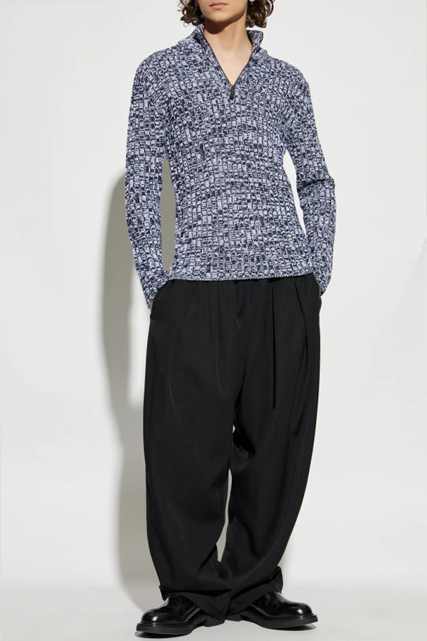 Der Pullover besticht durch einen klassischen, leicht taillierten Schnitt mit langen Ärmeln und Stehkragen, der durch einen eleganten Reißverschluss eine moderne Note erhält. Die subtile Gestaltung wird durch das Fehlen eines auffälligen Logos hervorgehoben. Dies ist die perfekte Wahl für kühle Tage – geeignet sowohl für den Alltag als auch für formelle Anlässe.