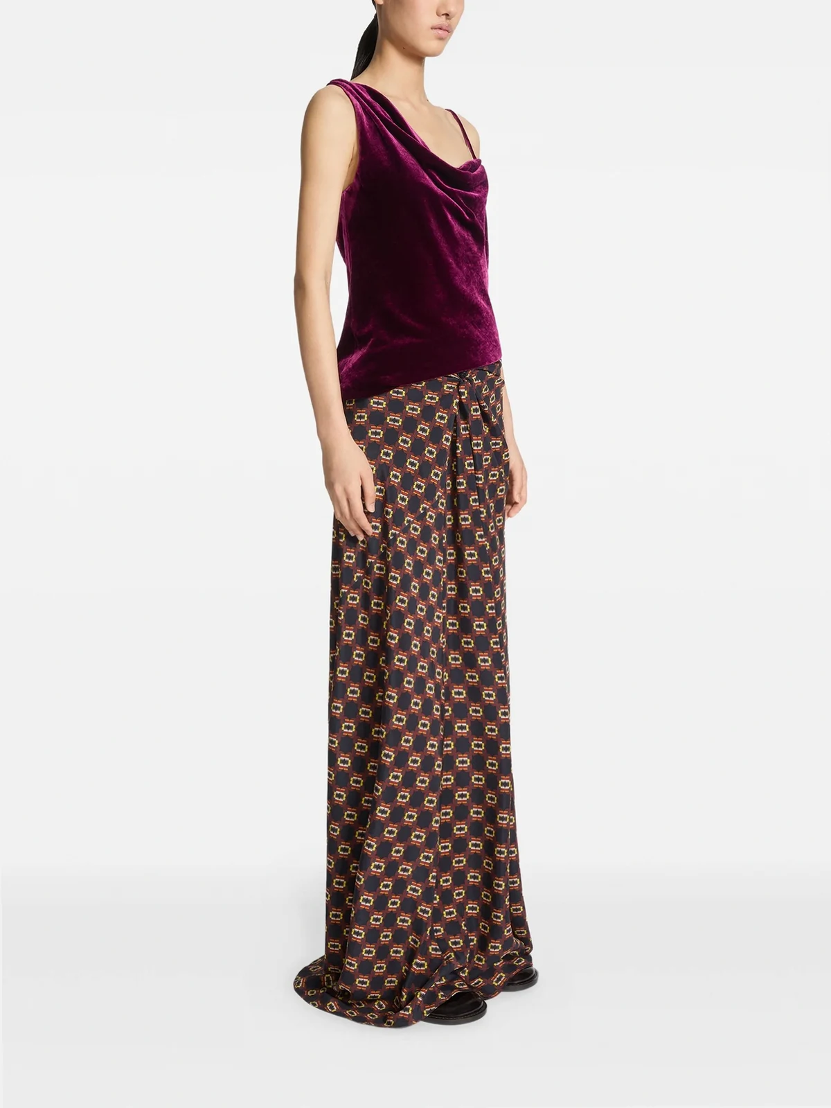 Drapierter Maxirock mit Krawatten-Print