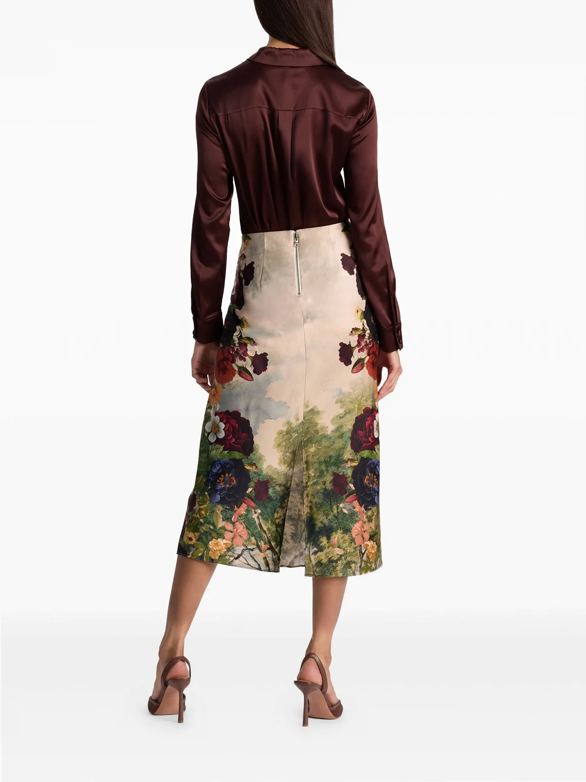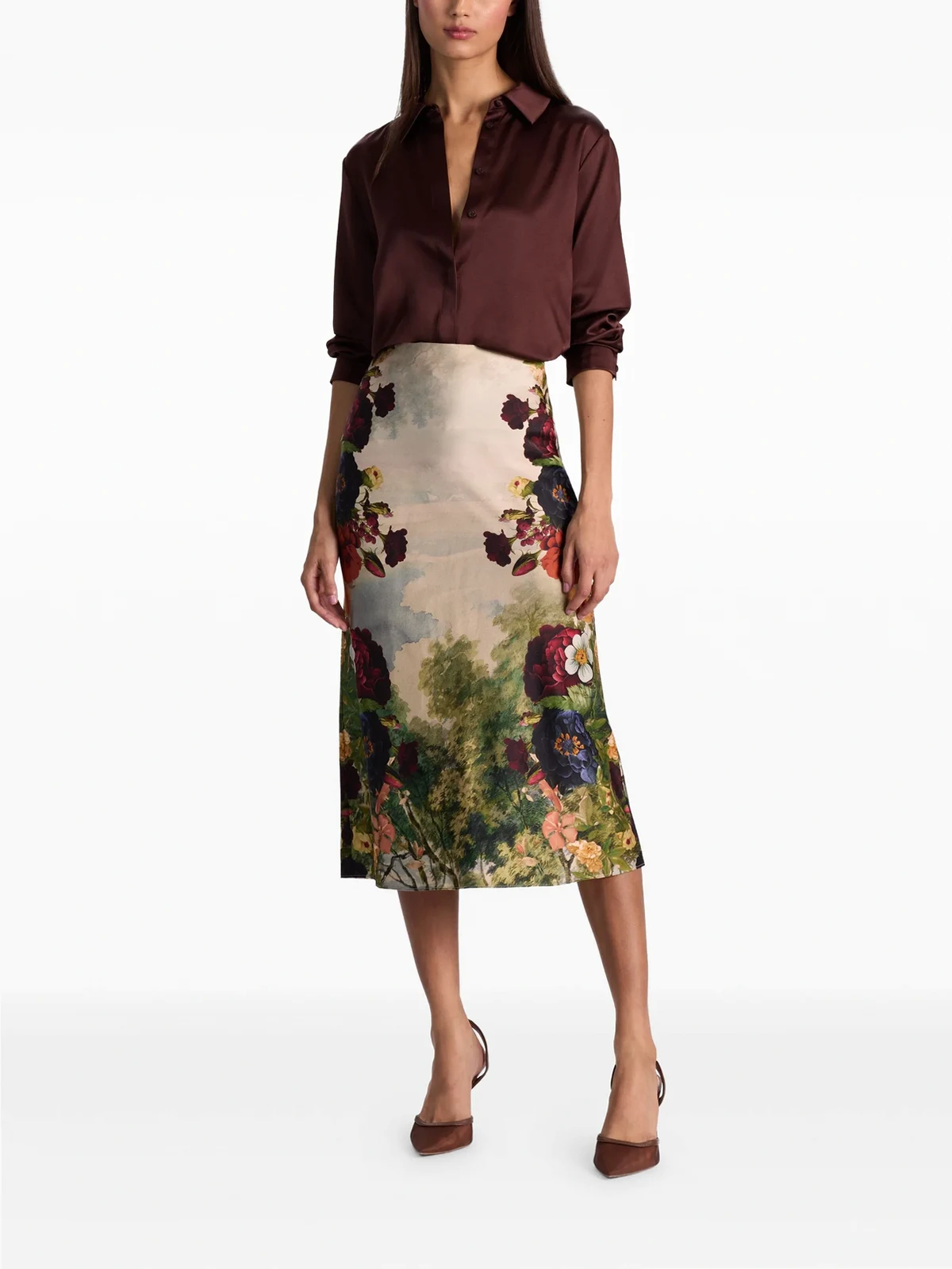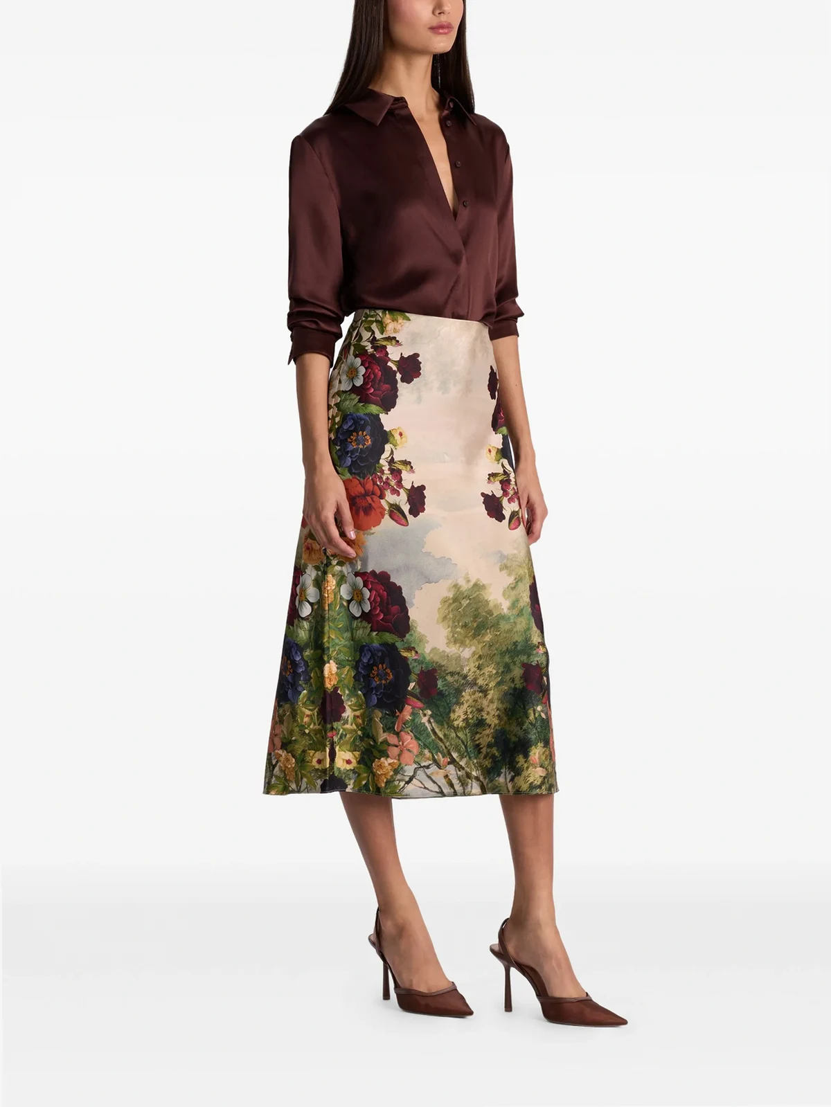 Maeve Satin-Midirock mit Blumen-Print