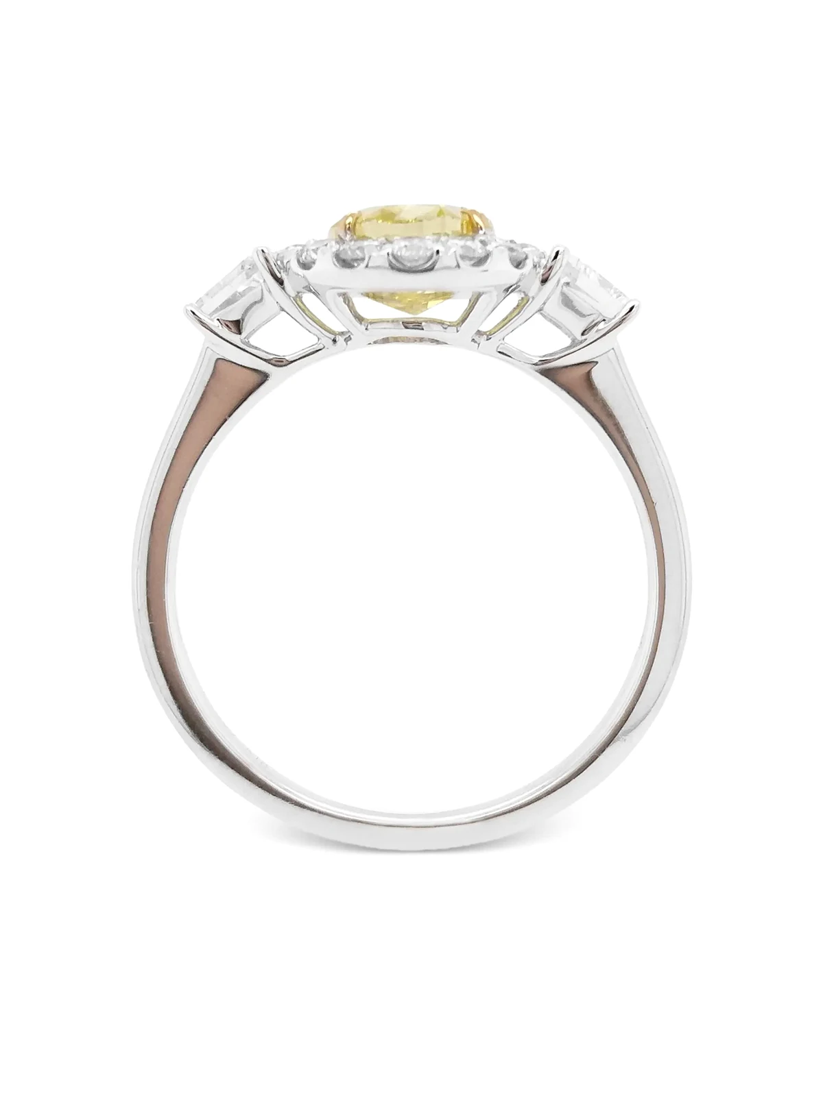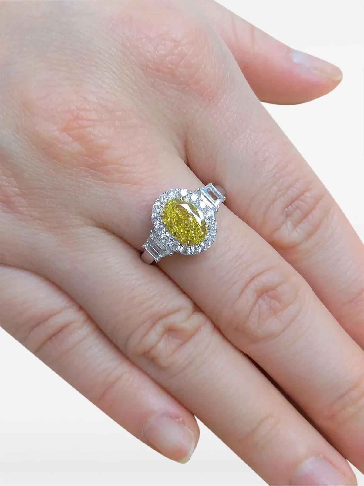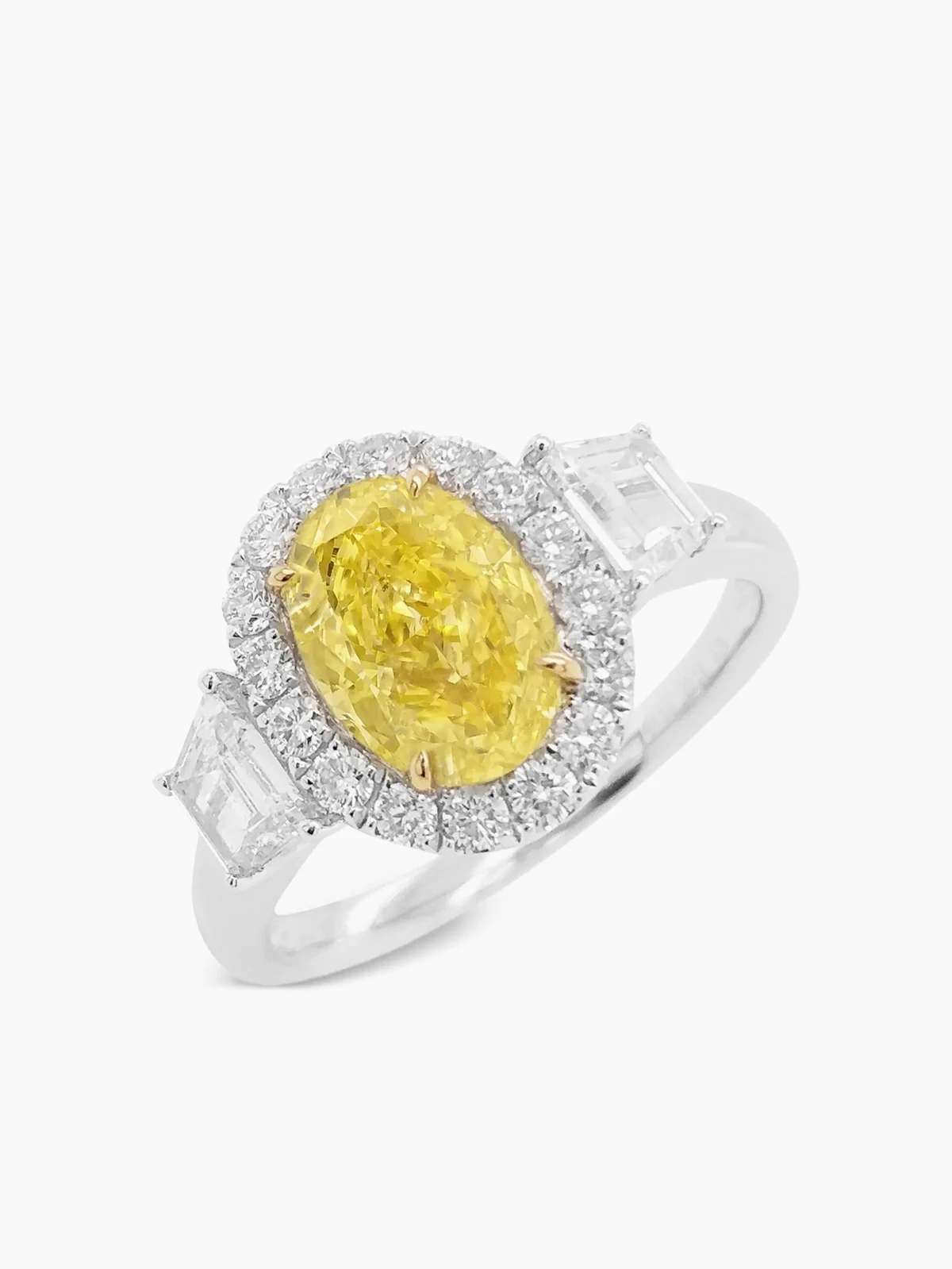 gelbe Diamanten in Krappenfassung und im Ovalschliff, Gesamtkaratgewicht 1,52