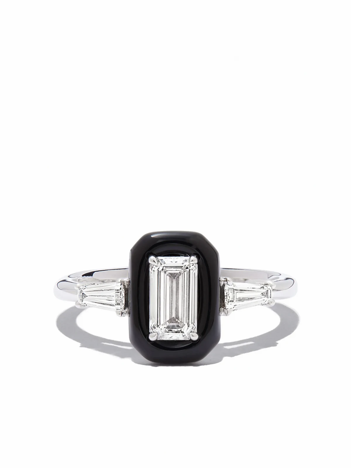 Poliertes Finish, weißer Diamant, Emaille-Elemente, Krappenfassung.