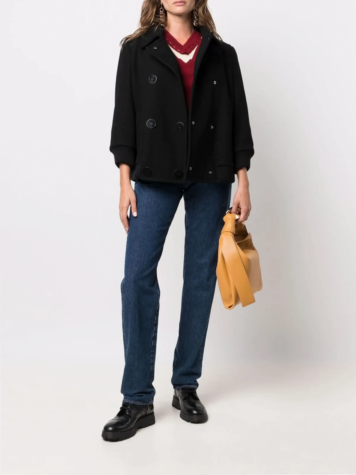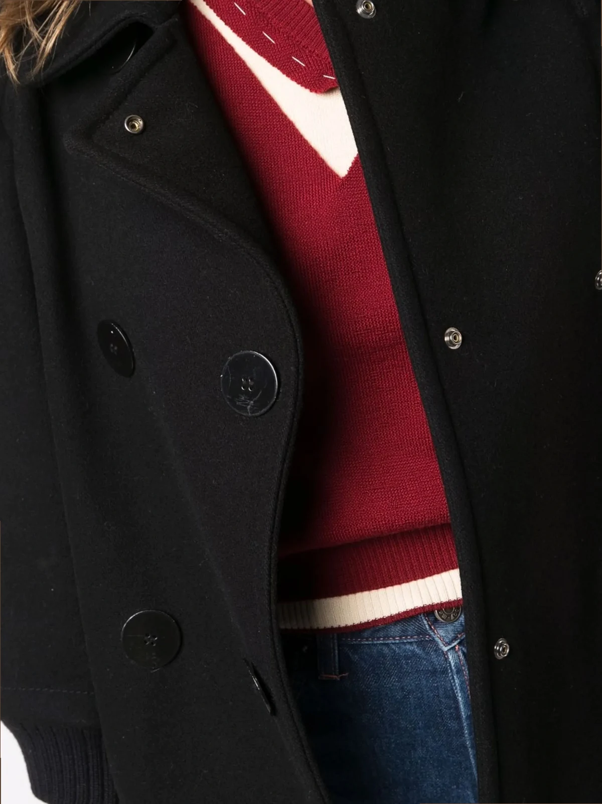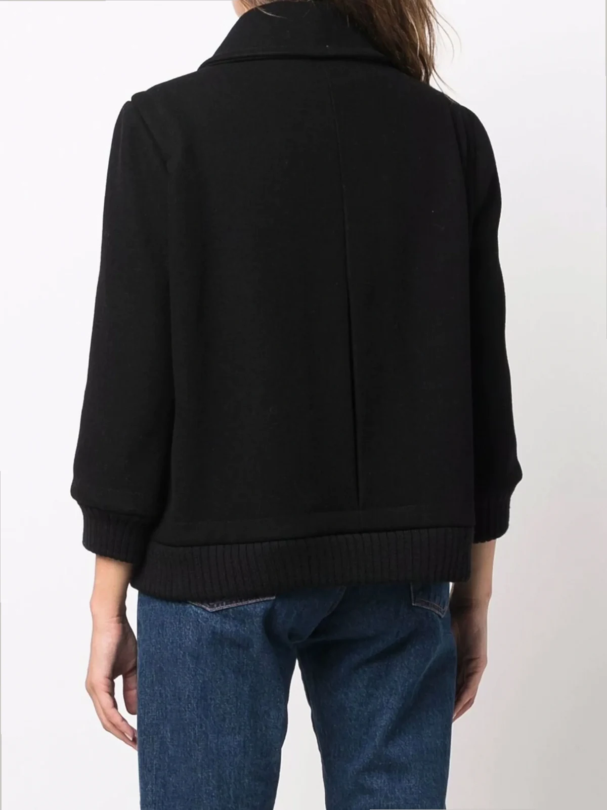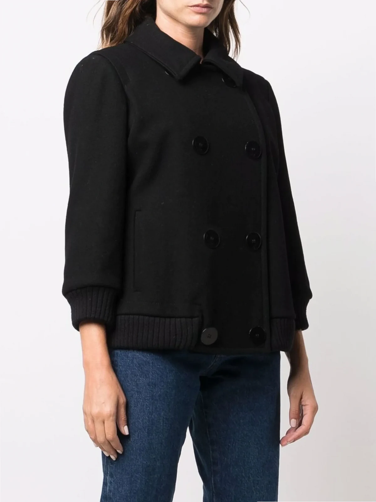 Klassischer Kragen, doppelreihiger Knopfverschluss, Cropped-Ärmel, gerippte Bündchen, zwei seitliche Eingrifftaschen, gerippter Saum. Farbe: Schwarz. BEWUSSTER SHOPPEN: Mit dem Kauf dieses Pieces erhalten Sie ein Stück Fashiongeschichte − und tun etwas Gutes für die Umwelt. .