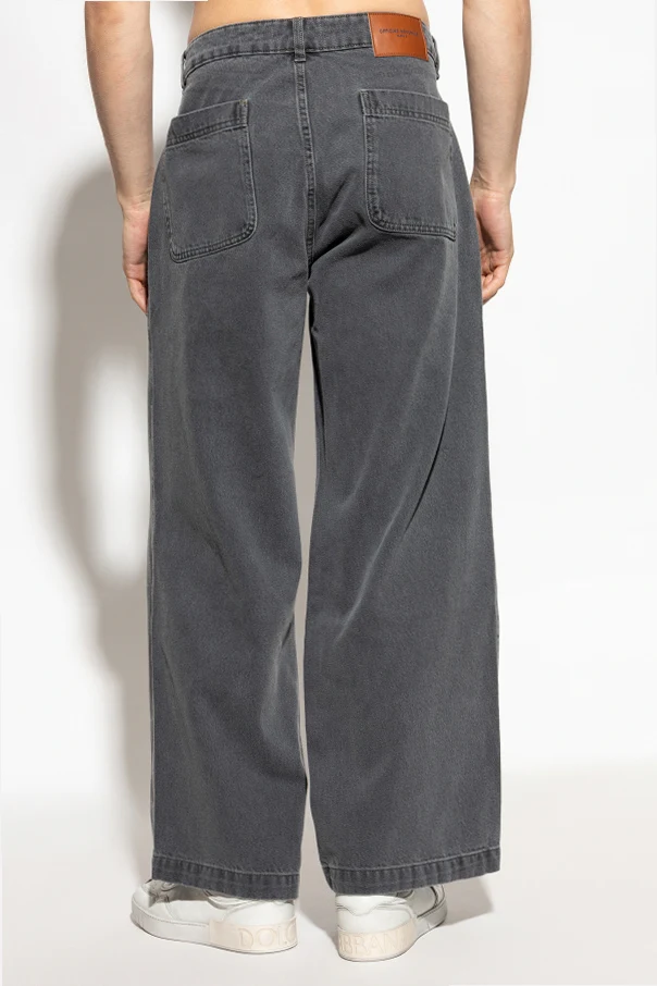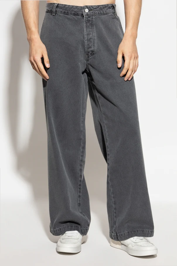 Jeans mit Logo der Marke Officine Generale sind eine außergewöhnliche Verbindung aus zeitloser Klassik und moderner Eleganz. Gefertigt aus hochwertigem, dickem Baumwoll-Denim in regulärer Passform mit weiten Beinen, bieten sie Komfort und Bewegungsfreiheit bei jedem Schritt. Der gedeckte, dunkelgraue Farbton mit subtiler Schattierung verleiht dem Ganzen einen raffinierten, Vintage-inspirierten Charakter, der jedes Outfit perfekt ergänzt.