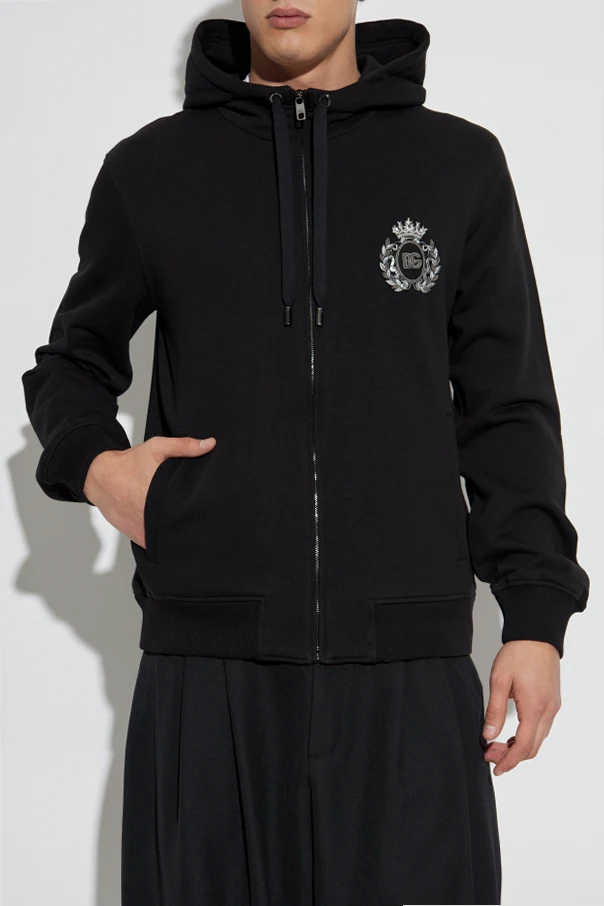 Sweatshirt mit glänzender Applikation von Dolce & Gabbana ist die Quintessenz minimalistischer Eleganz in Verbindung mit unvergleichlicher Verarbeitungsqualität. Sie bietet einen klassischen, geradlinigen Zip-up-Schnitt, der Bewegungsfreiheit und täglichen Tragekomfort garantiert.