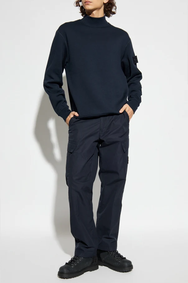 Turtleneck-Sweatshirt von Stone Island ist eine exquisite Wahl für Männer, die geschmackvolle Schlichtheit und einen außergewöhnlichen Charme schätzen. Sie besticht durch ihre tiefe, marineblaue Farbe sowie den klassischen, leicht lockeren Schnitt, der die Silhouette dezent betont und gleichzeitig maximalen Komfort garantiert.