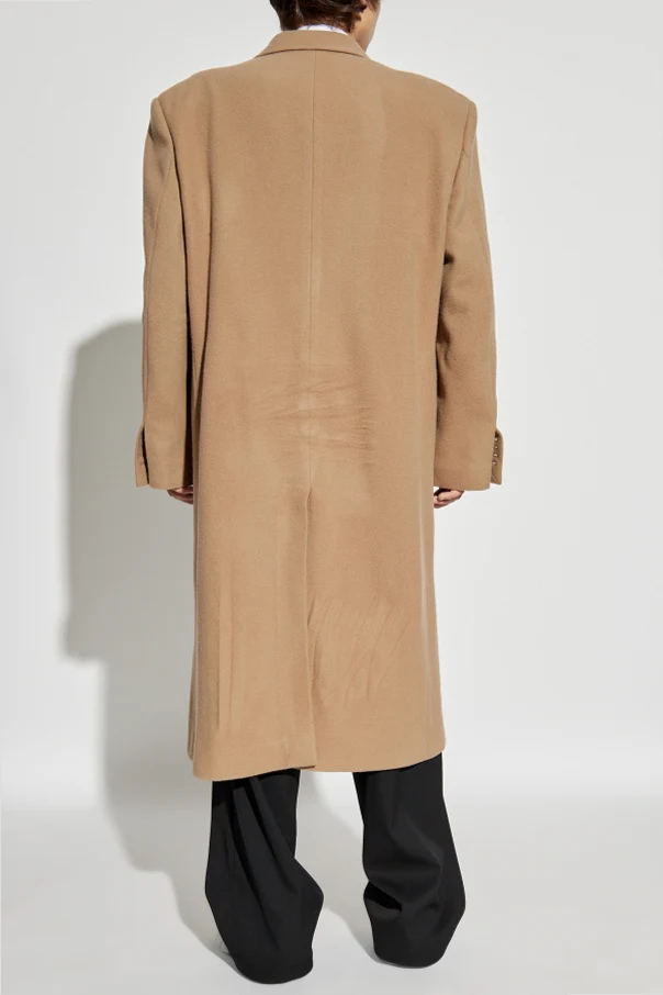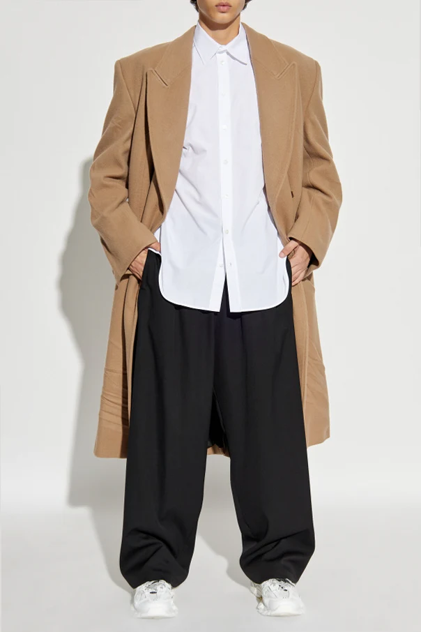Langer Wollmantel von Balenciaga ist die Quintessenz zeitloser Eleganz und meisterhafter Schneiderkunst. Im warmen, beigen Ton gehalten, betont der klassische, verlängerte Schnitt, der die Schultern sanft umhüllt, auf harmonische Weise die Erscheinung jedes Mannes. Hochwertige Wolle schafft eine edle, markante Textur und verleiht dem Mantel einen luxuriösen Charakter sowie außergewöhnliche Trageeigenschaften.