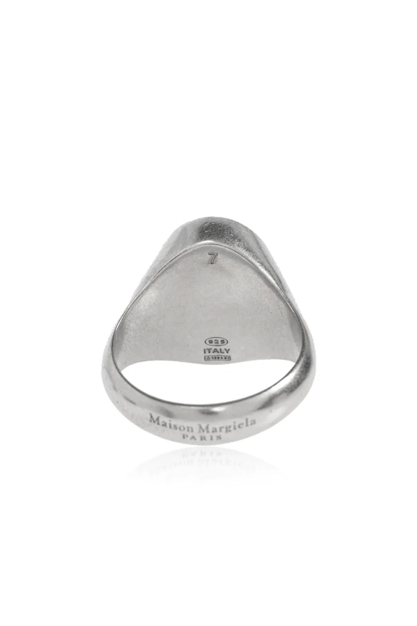 Auf der Innenseite des Siegelrings befindet sich das dezente, aber markante Logo "Maison Margiela", das die Kunstfertigkeit und den Ruf dieses Pariser Modehauses symbolisiert. Es ist ein zeitloses Schmuckstück, das sich hervorragend mit jedem Outfit kombinieren lässt und den individuellen Stil sowohl von Frauen als auch von Männern unterstreicht.