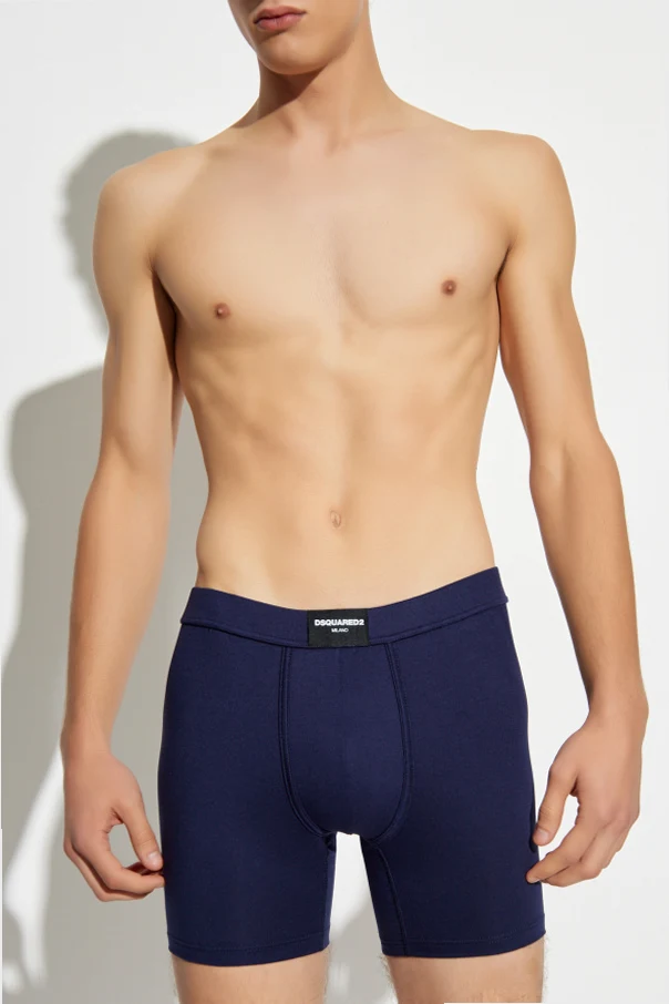Boxershorts mit einem Markenlogo-Patch von Dsquared2 sind eine raffinierte Wahl für Männer, die Exzellenz und subtile Mode zu schätzen wissen. Der klassische, körpernahe Schnitt mit verlängerter Beinlänge bis zur Mitte des Oberschenkels betont die Silhouette und bietet gleichzeitig höchsten Tragekomfort. Das schlichte, minimalistische Design in einem eleganten, dunkelblauen Farbton wird durch einen schwarzen Patch mit weißem Schriftzug „DSQUARED2 MILANO“ vollendet – die Quintessenz zeitloser Eleganz.