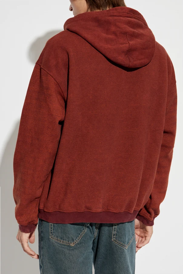 Die Materialzusammensetzung basiert auf einem weichen, baumwollähnlichen Gewebe mit spürbarer Velours- oder Jerseystruktur und wird durch ein kräftigeres, geripptes Finish an den Ärmelbündchen und am unteren Saum der Sweatshirt ergänzt. Abgerundet wird das Gesamtbild durch die kleine, rechteckige Signatur des Designers auf der linken Brust – ein dezentes, jedoch äußerst charakteristisches Detail der exklusiven Diesel-Linie.
