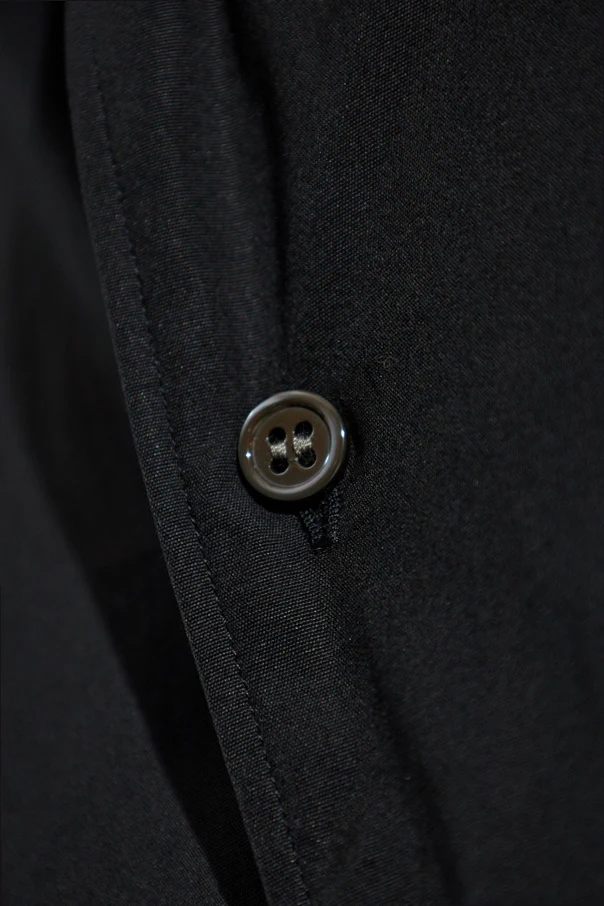 Sein locker geschnittener, leicht oversized Fit mit verlängertem Rückenteil balanciert subtil Formalität und Komfort. Die langen Ärmel, abgeschlossen mit Manschetten und Knöpfen, verleihen dem Gesamtbild einen dezenten Rhythmus.
