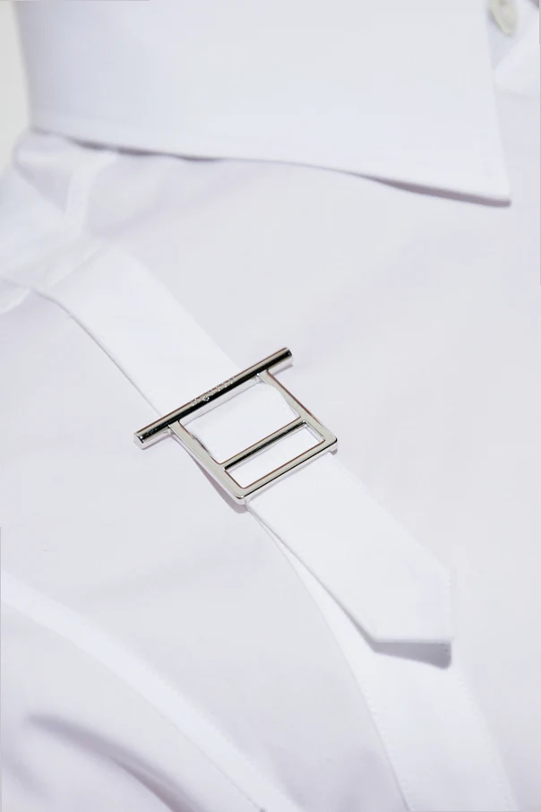 Das Hemd verfügt über eine Standard-Knopfverschlusssystem und Manschetten mit Knöpfen, was seinen formellen Charakter unterstreicht. Das Design der Marke verbindet kompromisslos Tradition mit Moderne, Vergangenheit mit Zukunft und Zartheit mit Stärke, provoziert und inspiriert die Modewelt.