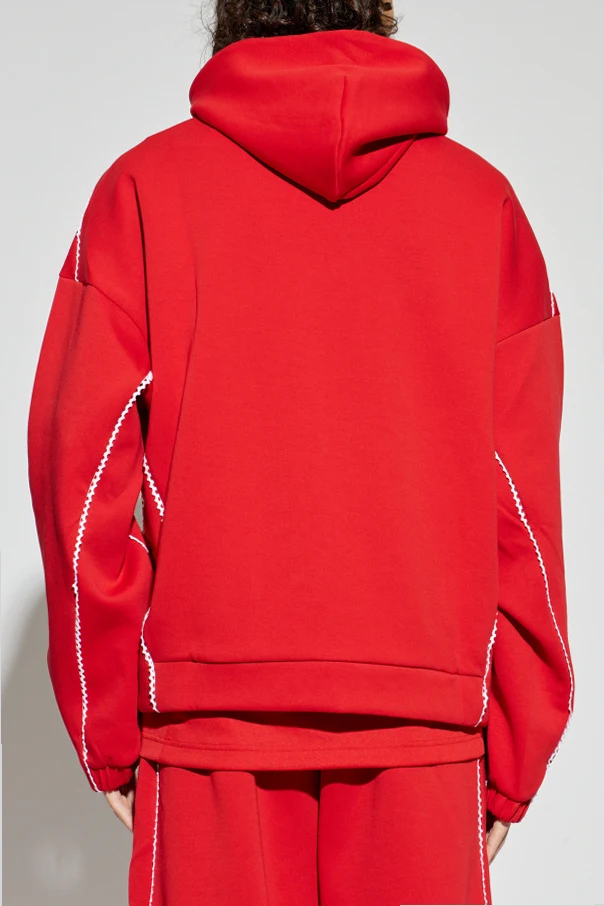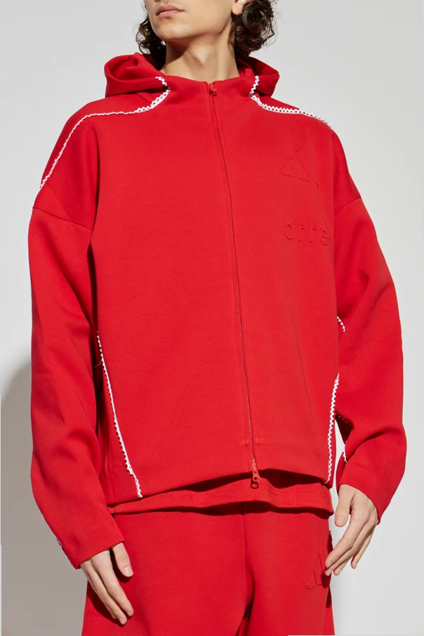 Adidas X ARTE ANTWERP ist eine Empfehlung für Kenner des raffinierten Stils luxuriöser Herren-Sportbekleidung. Dieses außergewöhnliche Sweatshirt, gehalten in einem tiefen Rot , begeistert durch den einfarbigen Stoff und den exklusiven, dicken Sweatshirt-Strick. Der durchdachte, lockere Schnitt mit einem dezenten Oversize-Effekt sowie eine praktische Kapuze mit durchgehendem Reißverschluss betonen den Tragekomfort.