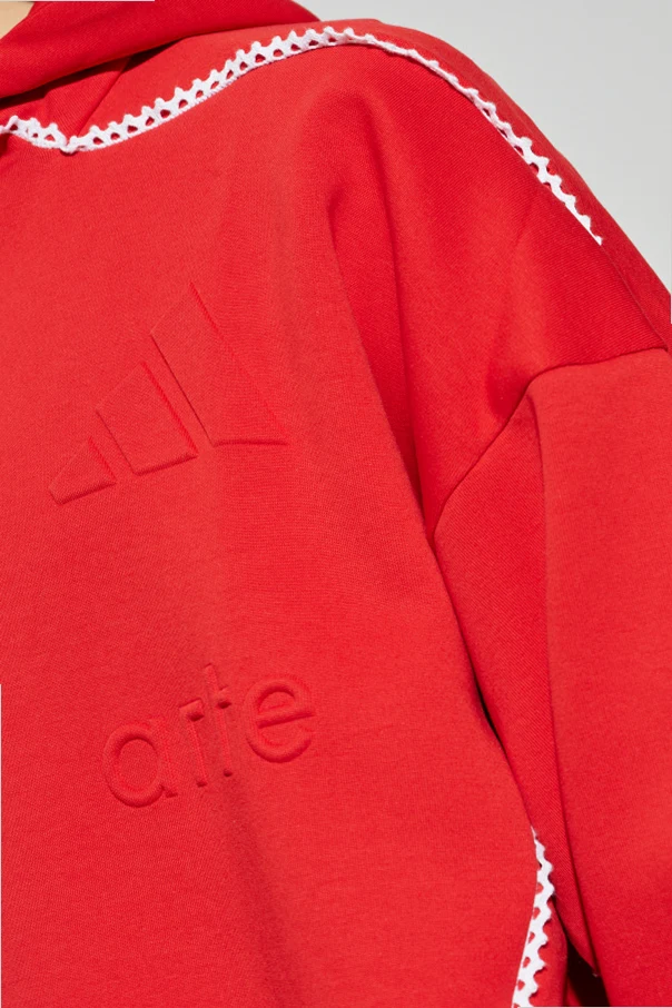 Elegante, weiße Zickzack-Nähte setzen die Linien des Sweatshirts harmonisch in Szene und verleihen ihm einen einzigartigen Charakter. Ein weiteres Highlight ist das dezente Branding auf der Brust: geprägte Logos der Marken Adidas und „arte“.