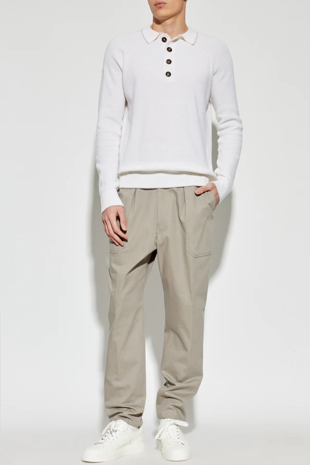 Hose mit Fischgrätmuster von Eleventy ist die perfekte Kombination aus klassischer Form und moderner Raffinesse. Gefertigt aus hochwertigster Baumwolle, begeistert sie mit ihrem beigen Farbton und dem dezenten, feinen Fischgrätmuster, das ihren exklusiven Charakter unterstreicht.