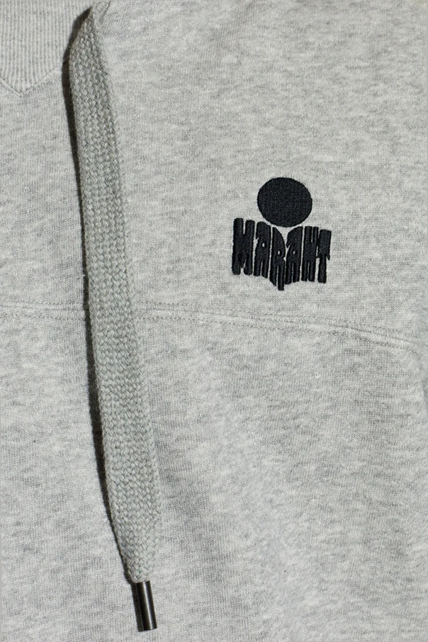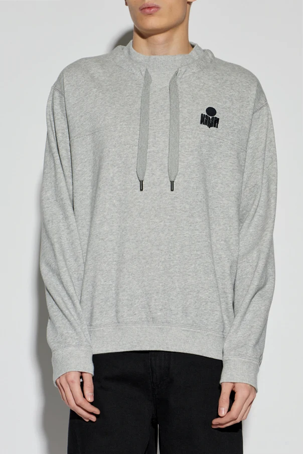 Der hochwertige Sweatstoff mit leicht melierter Struktur bietet herausragenden Komfort und Langlebigkeit. Ein einzigartiges Detail sind die originellen Kordeln am Ausschnitt, die mit Metallenden versehen sind – ein echter Blickfang, der das moderne Design betont. Die dezente, kontrastierende Stickerei des „MARANT”-Logos auf der linken Brust hebt exklusiv die Herkunft des Sweatshirts hervor.