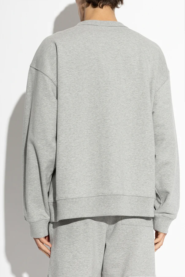 Locker geschnittener Pullover von Dries Van Noten verkörpert zeitlose Eleganz und raffinierten, modernen Minimalismus. In Grau gehalten, besticht er durch eine entspannte, oversized Schulterpartie sowie einen klassischen, runden Crewneck-Ausschnitt, der den Hals dezent betont. Hochwertige Baumwolle mittlerer Stärke begeistert durch ihre weiche, angenehme "French Terry"-Oberfläche. Der gesamte Pullover kommt ohne jegliche Muster, Prints oder Logos aus, was ihm besondere Noblesse und Vielseitigkeit verleiht. Funktionale Rippbündchen an den Ärmelenden, am unteren Saum sowie am Ausschnitt unterstreichen dezent den eleganten Charakter—eine raffinierte und zugleich diskrete Wahl.