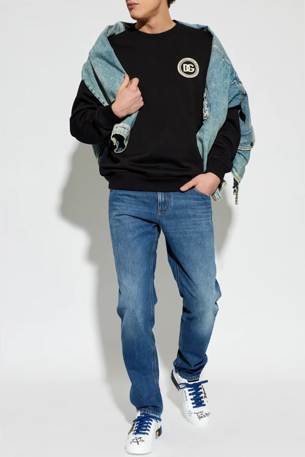 Sweatshirt mit Logo-Applikation der Marke Dolce & Gabbana präsentiert eine raffinierte Interpretation des klassischen Herren-Crewneck-Sweatshirts. Gefertigt aus hochwertiger, weicher Baumwolle begeistert sie durch außergewöhnlichen Tragekomfort und eine sorgfältige Verarbeitung.