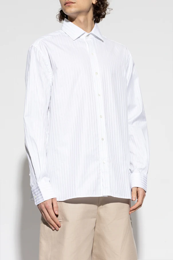 Hemd mit Streifenmuster des renommierten Designers JW Anderson ist die Quintessenz moderner Eleganz. Sein klassischer, formeller Schnitt wird durch ein raffiniertes Muster ausgeglichen – regelmäßige, vertikale Streifen in einem blauen Farbton unterstreichen auf dezente Weise das hochwertige Baumwollgewebe.