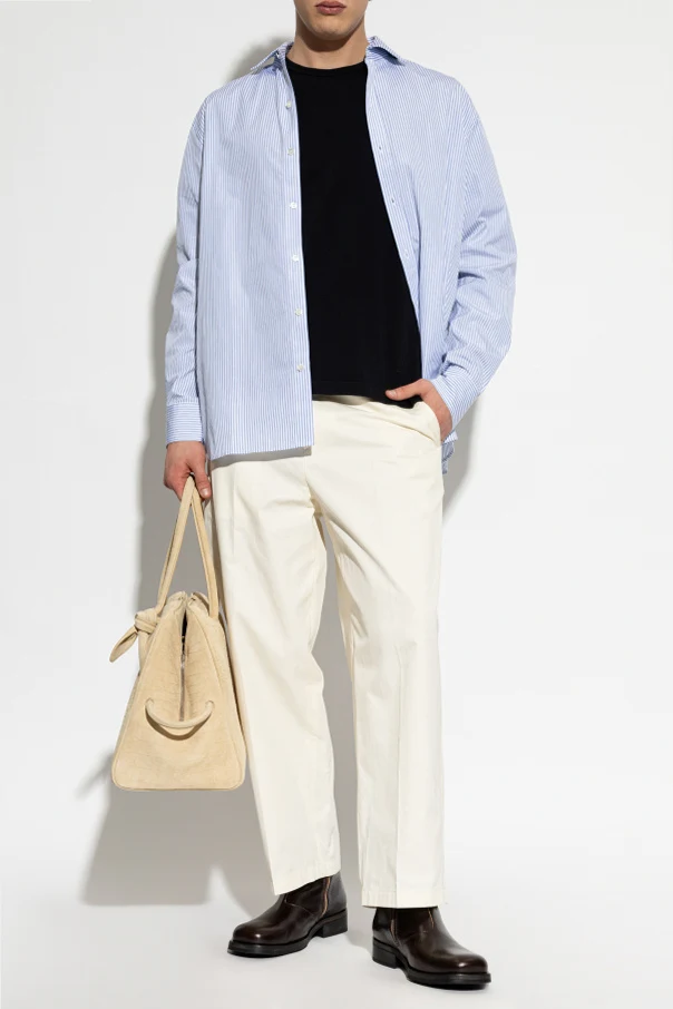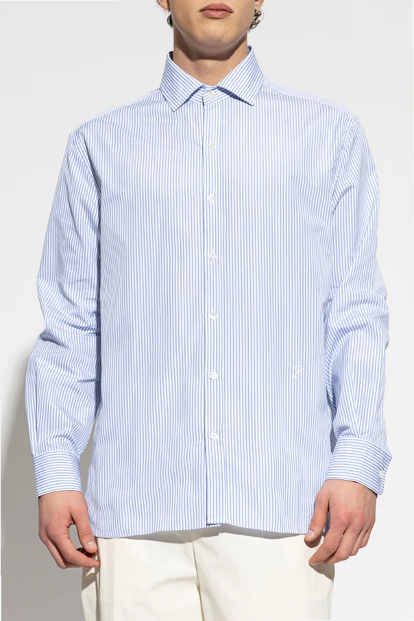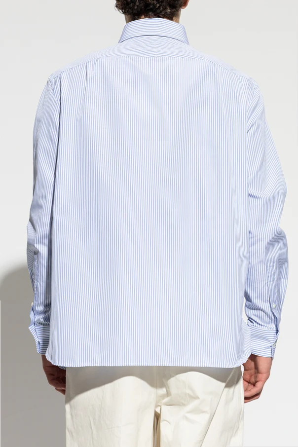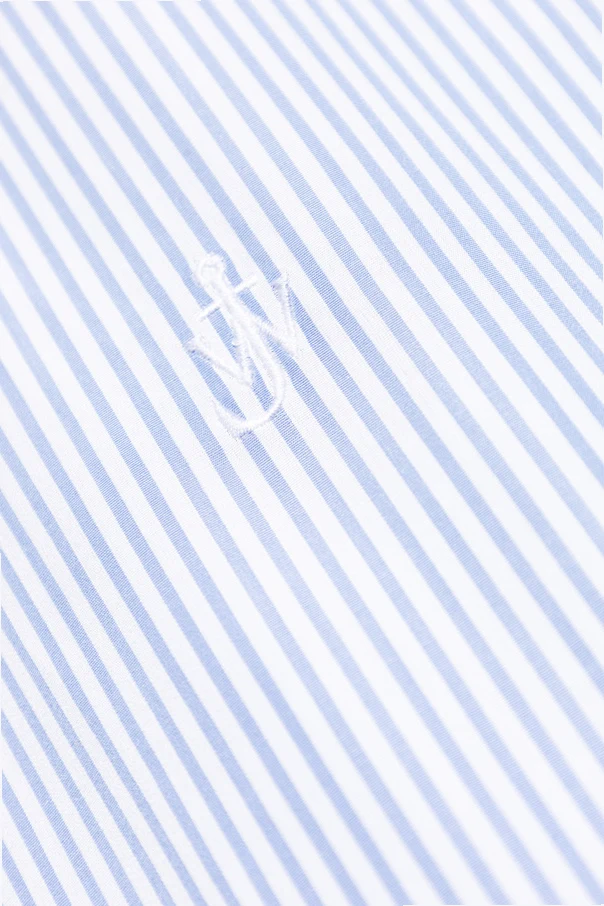 Hemd mit Streifenmuster , signiert vom renommierten Designer JW Anderson, ist eine außergewöhnliche Wahl für Männer, die raffinierte Ästhetik und eine moderne Interpretation der Klassik schätzen. Sorgfältig aus glatter, hochwertiger Baumwolle gefertigt, begeistert es mit einer dezenten Kombination aus hellblauen, vertikalen Streifen auf schneeweißem Hintergrund.