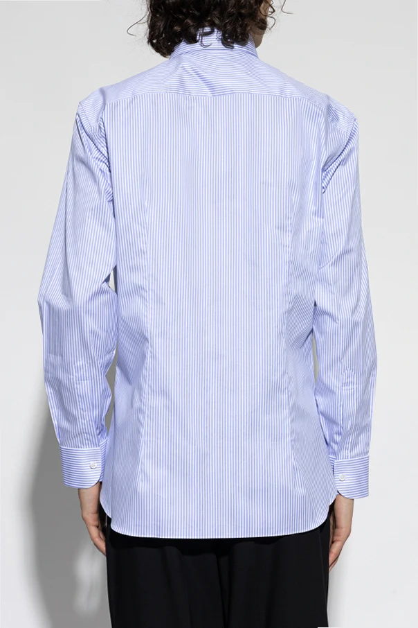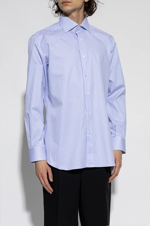 Gestreiftes Hemd der Marke Brioni ist eine exquisite Wahl für Liebhaber zeitloser Eleganz. Veredelt mit glatter, hochwertiger Baumwolle mit dezentem Glanz, besticht es durch seine klassische Form und das durchdachte Zusammenspiel aus weißen und blauen, regelmäßigen Streifen. Der sorgfältig geschnittene, feste Kragen mit Knopfverschlussmöglichkeit sowie die langen Ärmel mit edlen, geraden Manschetten unterstreichen den formellen Charakter des Hemdes.