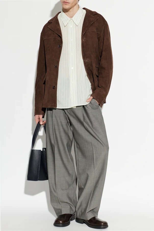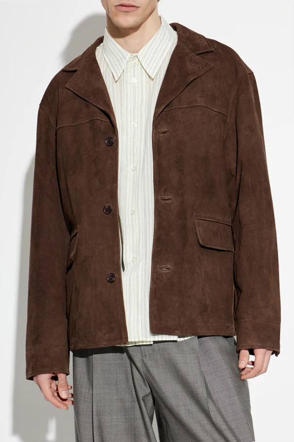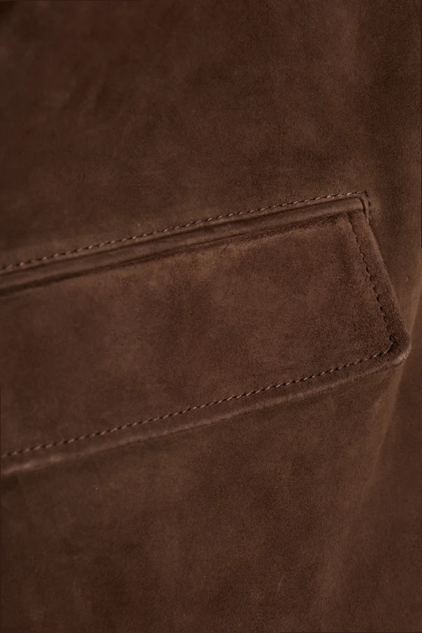 Die LedJacke ‘Erickson’ von Officine Generale ist das Synonym für zeitlose Eleganz in einer modernen Ausführung. Gefertigt aus besonders weichem Veloursleder in einem tiefen, braunen Farbton, zieht sie durch ihr mattes Finish und die makellos glatte Textur alle Blicke auf sich.