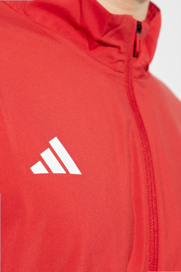 Die glatte Struktur der Jacke, die auf überflüssige Verzierungen verzichtet, lenkt die Aufmerksamkeit lediglich auf den dezenten weißen Adidas-Logo-Print auf der linken Brust. Der durchgängige, leichtgängige Reißverschluss garantiert einfache Handhabung und macht dieses Detail nicht nur zu einem praktischen, sondern auch ästhetischen Bestandteil des Designs. Das Fehlen einer Kapuze betont die raffinierte Schlichtheit und Vielseitigkeit.