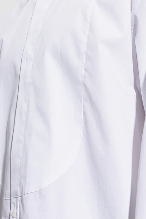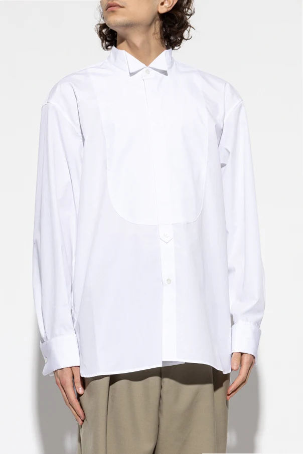 Der weiße Farbton und glatte, hochwertige Baumwolle sorgen für außergewöhnliche Weichheit, höchsten Tragekomfort und makellose Optik. Das Hemd zeichnet sich durch eine eindrucksvolle, halbrunde Brustleiste aus, inspiriert von klassischen Smokings, die dem Design einen unverwechselbaren Charakter verleiht. Lange Ärmel mit Manschetten, die mit Knöpfen schließen, sowie ein kleiner, spitzer Kragen stellen Minimalismus und handwerkliche Perfektion dar.