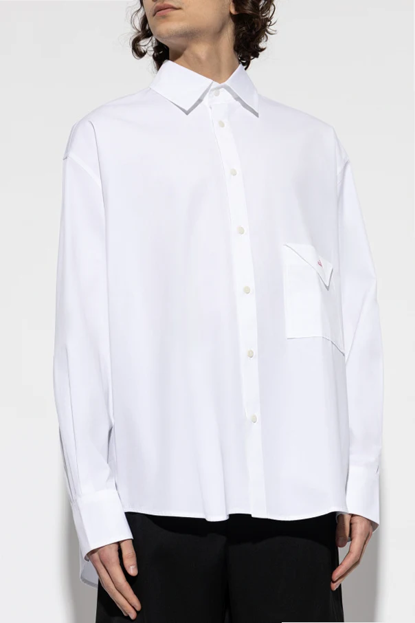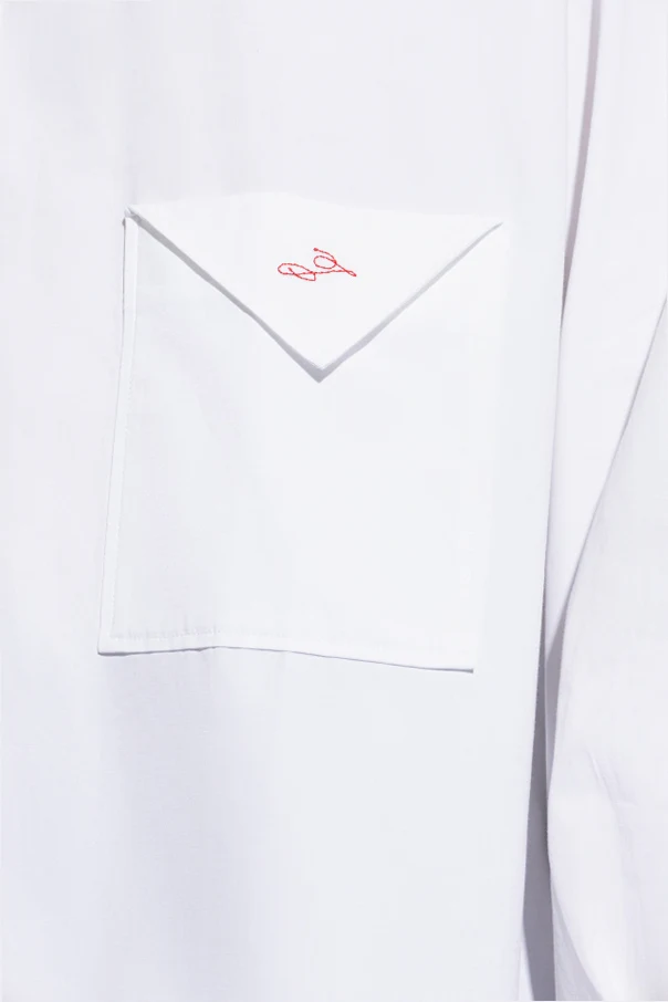 Hemd mit Tasche von Jacquemus ist ein außergewöhnlicher Vorschlag für Liebhaber zeitloser Eleganz. Das Modell wurde mit viel Liebe zum Detail entworfen – der klassische, formelle Schnitt mit einer leicht lockeren Passform garantiert eine dezente Betonung der Silhouette, während die langen Ärmel mit breiten Manschetten dem Design einen raffinierten Charakter verleihen.