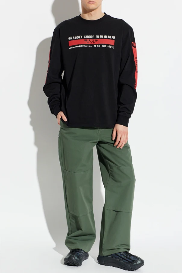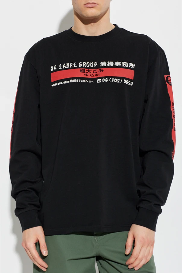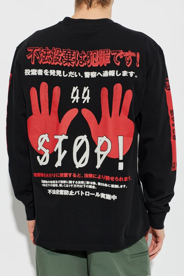 Designer-Prints auf der Vorderseite – weiße und rote Schriftzüge sowie grafische Motive, darunter faszinierende asiatische Zeichen und Branding – ziehen die Blicke auf sich. Einzigartige, rote Details an den Ärmeln vervollständigen den außergewöhnlichen Charakter dieses Angebots.