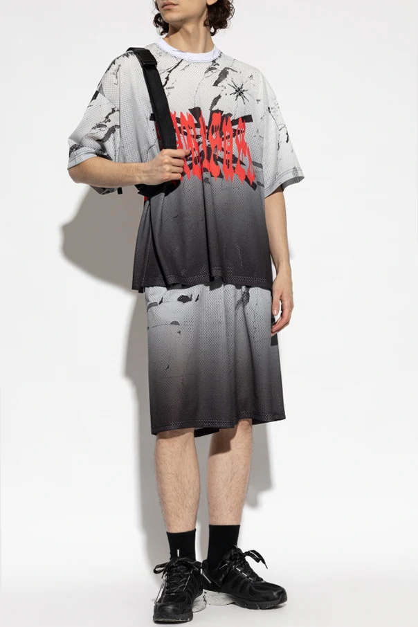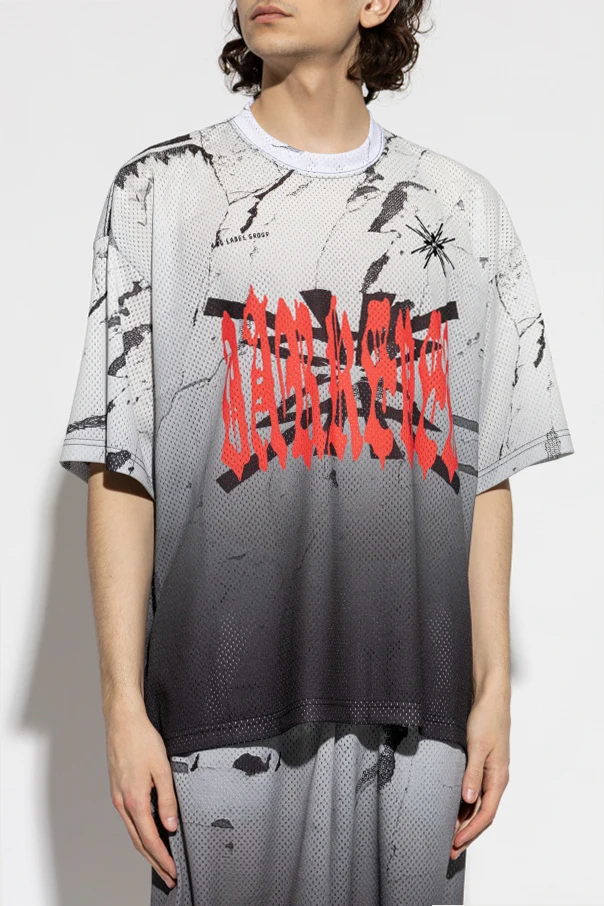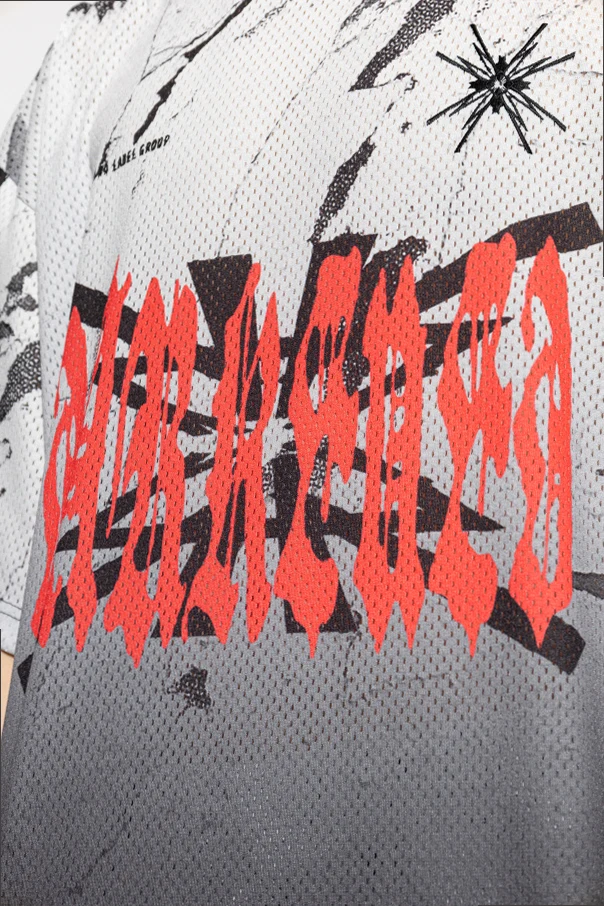Perforiertes T-Shirt von 44 Label Group ist ein Ausdruck erstklassigen, zeitgenössischen Designs. Der lockere, oversize Schnitt mit kurzen Ärmeln und rundem Ausschnitt schafft ein unvergleichliches Tragegefühl, ohne dabei an stilistischer Aussagekraft zu verlieren. Die Netzstruktur des Stoffes in Grautönen harmoniert subtil mit dem marmorierten Motiv sowie schwarzen, abstrakten Graffiti-Details und erzeugt so einen faszinierenden visuellen Effekt.