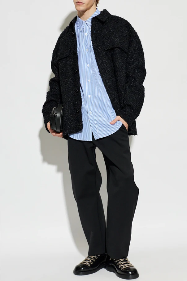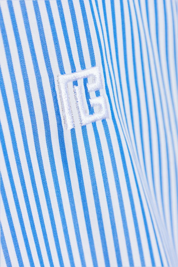 Hemd mit Streifenmuster von Balmain ist der Inbegriff für raffinierten Stil und zeitlose Eleganz. Entworfen für den modernen Mann, besticht es durch einen geradlinigen, klassischen Schnitt sowie einen leicht verlängerten, abgerundeten Saum, der sich perfekt an die Silhouette anpasst. Die langen Ärmel enden in Manschetten mit Knöpfen und der traditionelle Kragen unterstreicht den formellen Charakter des Hemdes.