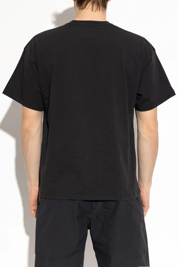 Dieses schwarze T-Shirt besticht durch eine subtile Verzierung – ein geometrisches Motiv in Form eines Dreiecks sowie der dezente, rote „ROA“-Print an der Schulterlinie verleihen dem Gesamtbild einen originellen Charakter. Der runde Ausschnitt und die kurzen, lockeren Ärmel sind eine zeitlose Wahl für Männer, die Vielseitigkeit und Komfort schätzen.