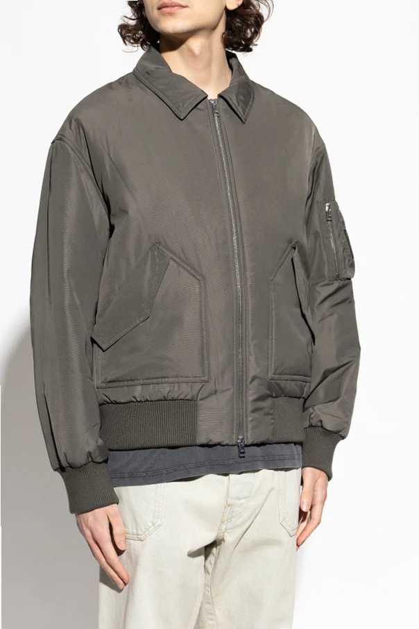 Gefütterte Bomberjacke von Maison Kitsuné ist ein außergewöhnliches Angebot für Liebhaber zeitloser Eleganz und urbanen Stils. Ihre verkürzte, leicht oversize geschnittene Silhouette mit weiten Ärmeln sowie markanten Bündchen an den Ärmelabschlüssen und am Saum verleiht ihr einen charakteristischen, modernen Look.