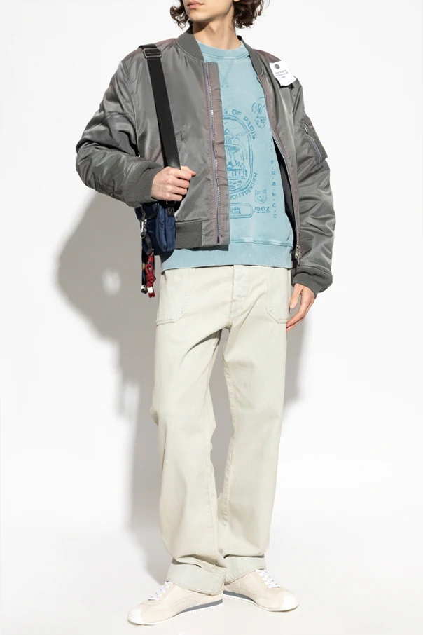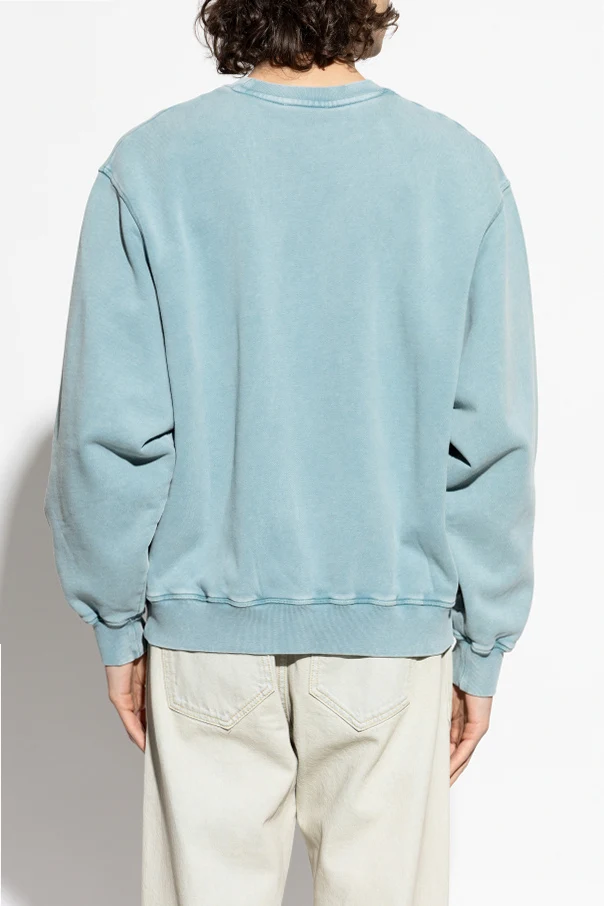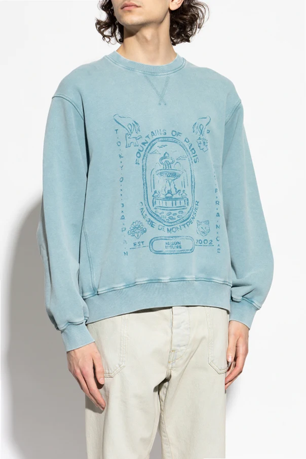 Sweatshirt mit Print von Maison Kitsuné ist die Verkörperung diskreter Eleganz, bei der französische Lässigkeit auf japanische Präzision trifft. Die klassische Crewneck-Silhouette mit leicht abgesenkten Schultern bietet Bewegungsfreiheit, während das blaue Farbspiel in Verbindung mit dem weichen, gewaschenen Baumwollstoff einen dezenten Vintage-Akzent verleiht.