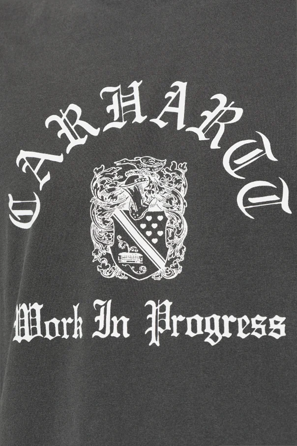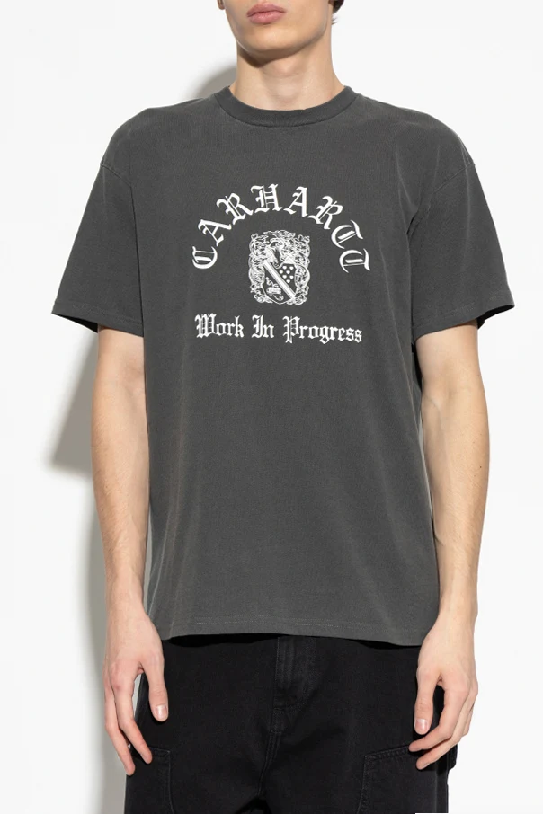 Der graue Farbton des Stoffes bildet einen edlen Hintergrund für den eindrucksvollen, weißen Print auf der Brust: Der „CARHARTT“-Schriftzug in gotischer Typografie sowie das Wappen-Emblem mit dem Slogan „Work In Progress“ zollen der langjährigen Tradition der Marke Tribut und schaffen eine unverwechselbare Komposition. Der klassische Schnitt mit kurzen Ärmeln und rundem Halsausschnitt überzeugt durch Komfort und zeitlose Form.