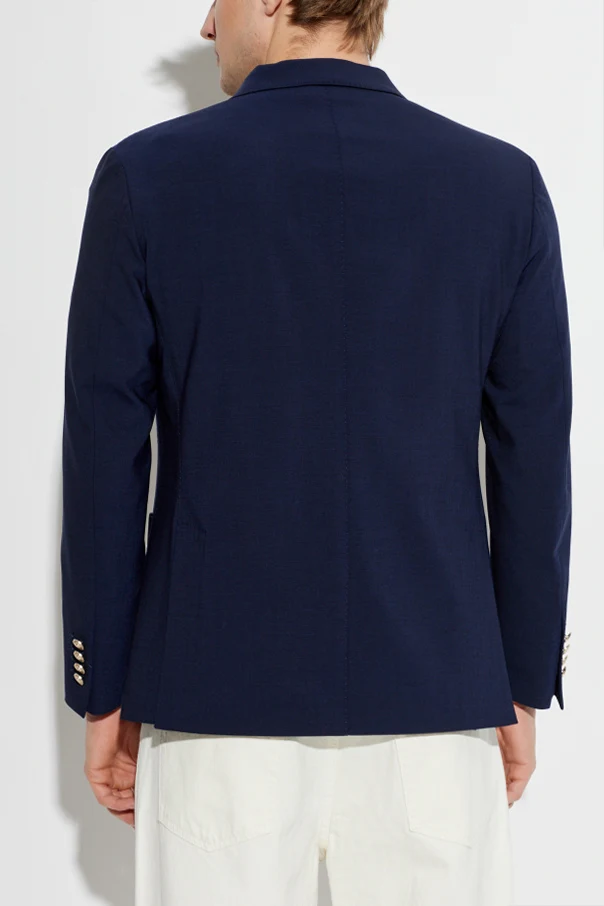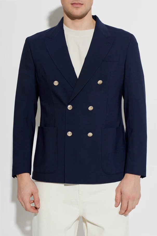 Sechs metallene Knöpfe auf der Vorderseite – jeder mit einem raffinierten Muster verziert – betonen dezent die Exklusivität dieses Modells. Praktische Details wie zwei geräumige, aufgesetzte Taschen unten sowie eine elegante Brusttasche heben den einzigartigen Charakter des Sakkos hervor.