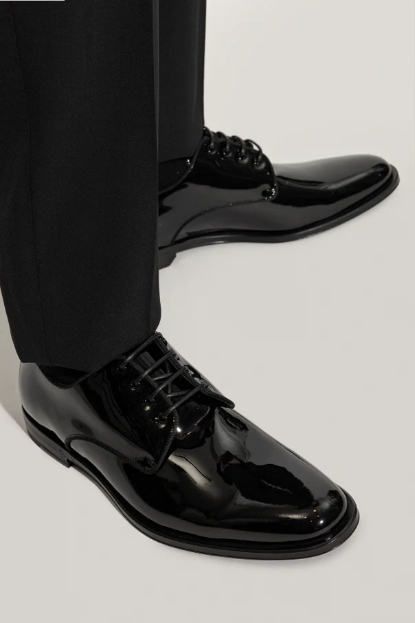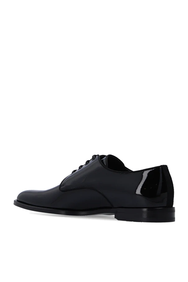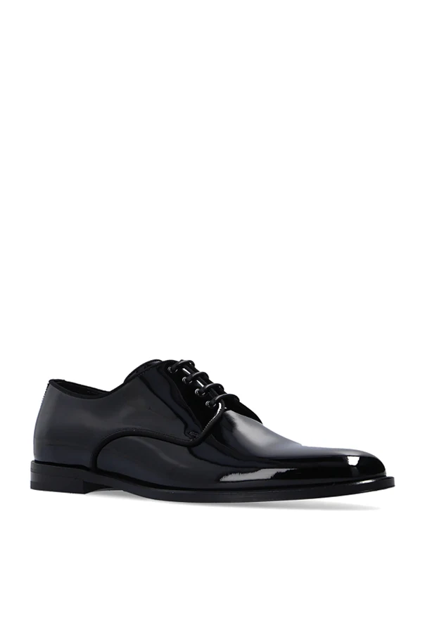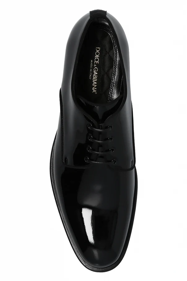 Black derby shoes from Dolce & Gabbana. Crafted from patent leather, this lace-up pair rests on a black leather sole.