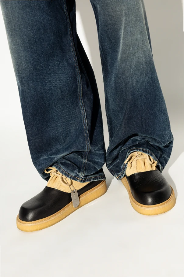 Die Schuhe verfügen über eine Schnürung, die eine perfekte Passform ermöglicht, und ein Metalletikett mit Schriftzug verleiht ihnen einen einzigartigen Charakter. Die solide Konstruktion und die dicke Sohle zeugen von der hohen Qualität und Langlebigkeit des Produkts.