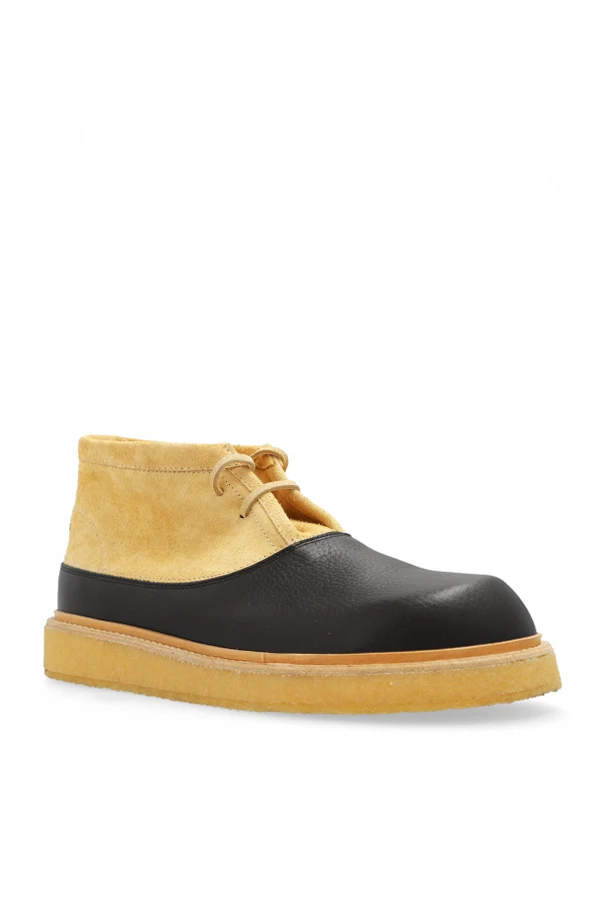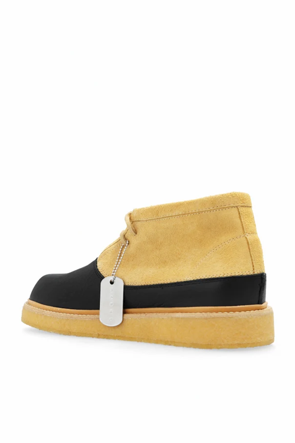 Wir präsentieren knöchelhohe Lederschuhe der renommierten italienischen Marke Marni , die für ihren Eklektizismus und ihr mutiges Design bekannt ist. Diese exklusiven Schuhe, entworfen von Francisco Russo, zeichnen sich durch einen klassischen knöchelhohen Schnitt und eine abgerundete Spitze aus, was ihnen eine zeitlose Eleganz verleiht.