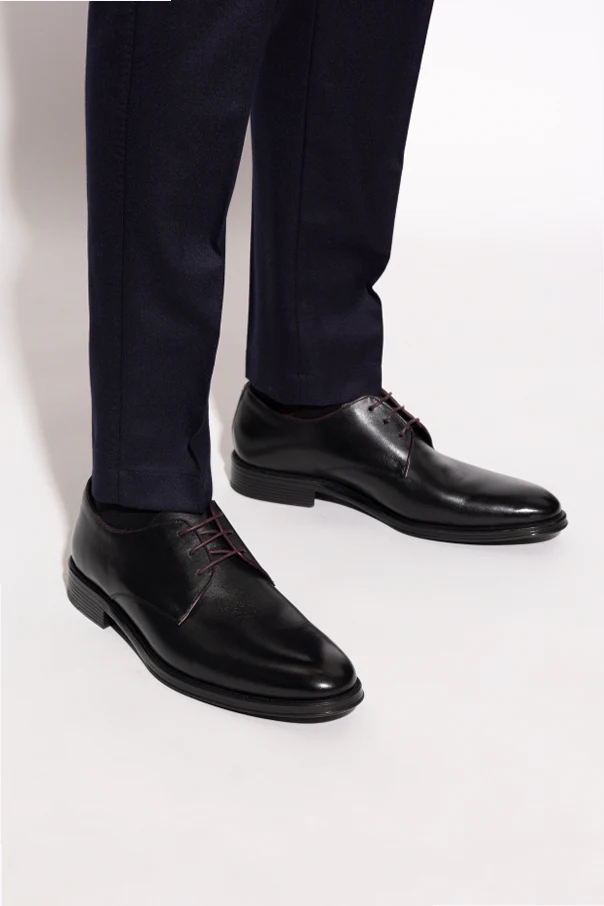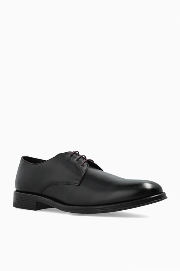 Wir präsentieren Herrenschuhe aus Leder aus der Kollektion der exklusiven Marke PS Paul Smith , die die Quintessenz von Eleganz und Klasse verkörpern. Hergestellt aus natürlichem Leder, ziehen diese schwarzen Derby-Schuhe im klassischen Design mit offener Schnürung die Blicke durch ihren subtilen Glanz und die dunkelroten Schnürsenkel auf sich, die ihnen einen einzigartigen Charakter verleihen.